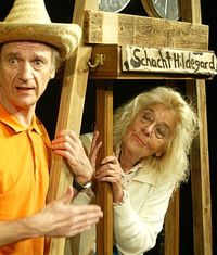 Soweit die Story, jetzt der Abend. Gute Schauspieler erzählen eine routiniert geschriebene unterhaltsame Geschichte mit vielen Lachern, in Erinnerung bleibenden Worthülsen ("Alles Fratze") und Symbolen (Trinkhalle), manchmal sogar mit leisen Untertönen. Kurz ein Abend im Freudenhaus lohnt sich, ABER die "Oper.." bleibt unerreicht. (js) Termine  |